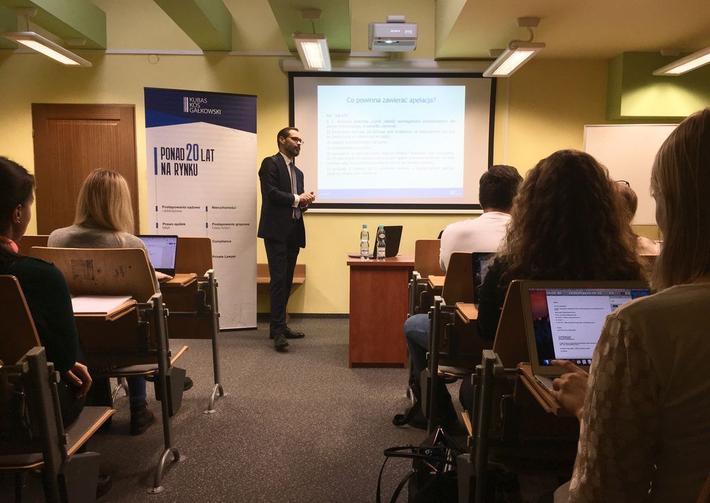 4 grudnia mec. Dariusz Dąbrowski, senior associate Kubas Kos Gałkowski, przeprowadził piąty, ostatni w tym roku warsztat z cyklu Legal Writing Academy „Piszemy apelację”.