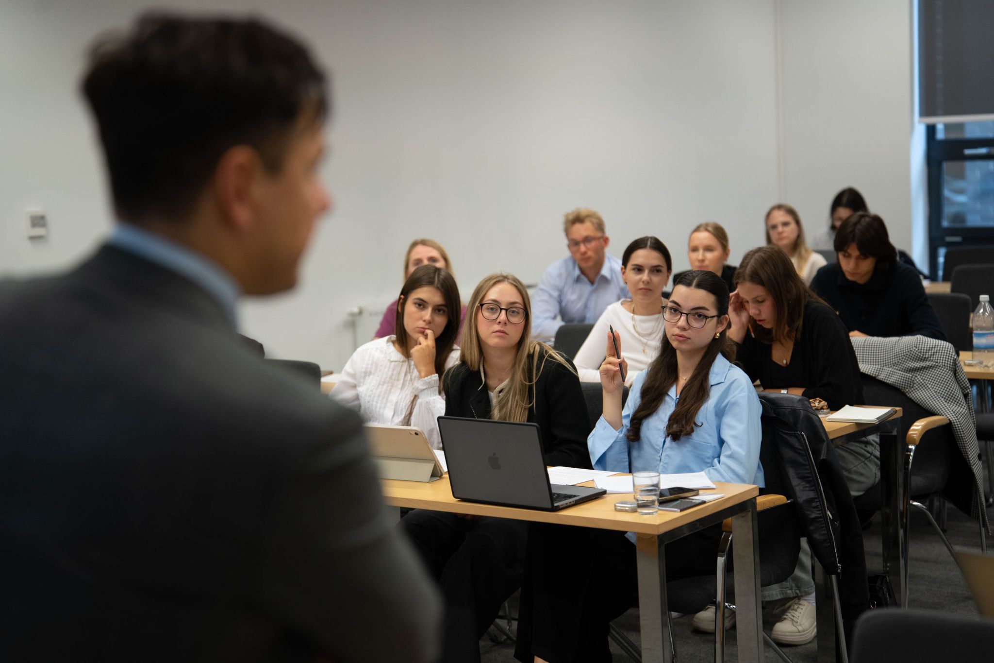 Drugiego dnia Maciej Durbas, partner i lider Praktyki Arbitrażowej Kancelarii Prawnej KKG Legal, przedstawił podstawy arbitrażu międzynarodowego, podkreślając, dlaczego stał się on jedną z wiodących metod rozwiązywania sporów transgranicznych. Następnie omówił ze studentami podstawowe zagadnienia związane z umową o arbitraż, wskazując jej rolę jako kamienia węgielnego postępowania arbitrażowego i dzieląc się praktycznymi spostrzeżeniami ze swojego doświadczenia zawodowego.