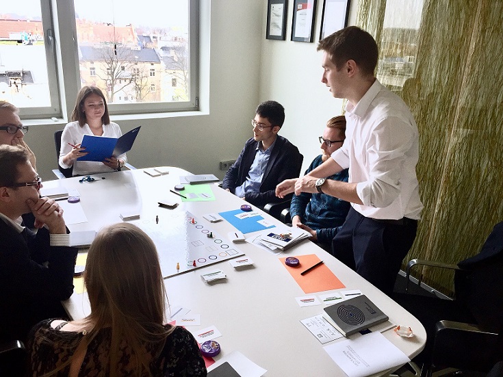 Dzień otwarty rozpoczęły wystąpienia pracowników, którzy udzielali rad związanych z rozwojem kariery prawnika. Bardzo dużym zainteresowaniem cieszył się punkt konsultacji CV, w którym nasza HR Manager analizowała dokumenty rekrutacyjne oraz udzielała wskazówek na co warto zwrócić uwagę przy ich tworzeniu. Uczestnicy zwiedzali Kancelarię w formie interaktywnej gry, a następnie wzięli udział w prawniczej grze planszowej „Po szczeblach kariery”, w której nagrodą było zaproszenie do odbycia stażu w Kancelarii. Wszystkim zwycięzcom serdecznie gratulujemy!