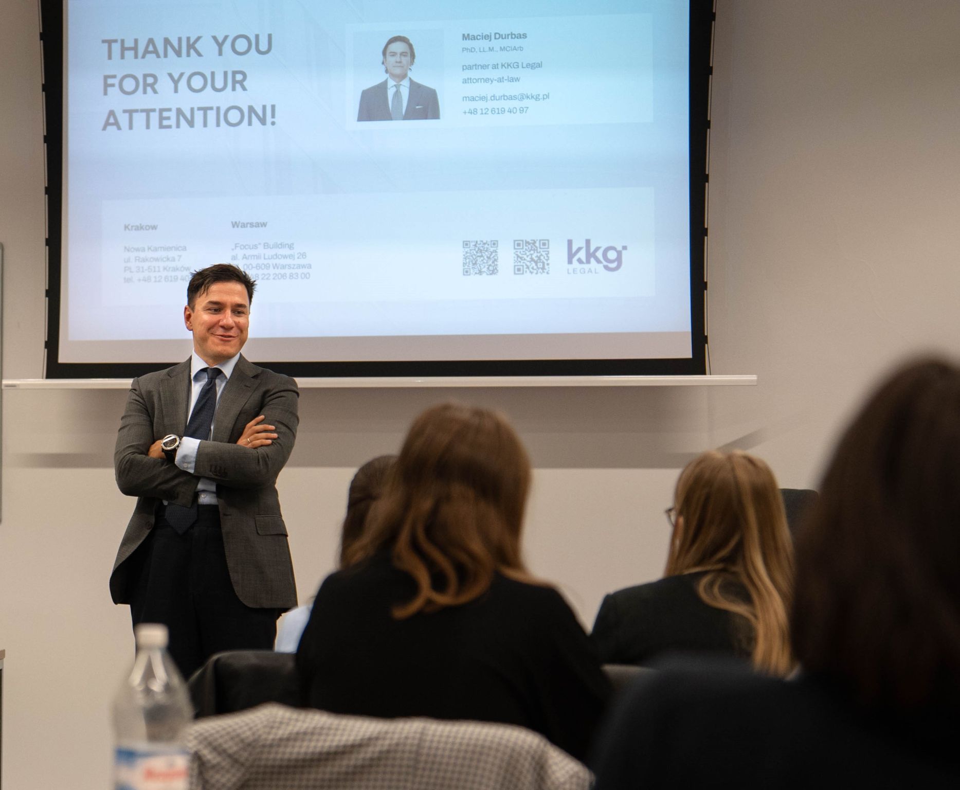 Drugiego dnia Maciej Durbas, partner i lider Praktyki Arbitrażowej Kancelarii Prawnej KKG Legal, przedstawił podstawy arbitrażu międzynarodowego, podkreślając, dlaczego stał się on jedną z wiodących metod rozwiązywania sporów transgranicznych. Następnie omówił ze studentami podstawowe zagadnienia związane z umową o arbitraż, wskazując jej rolę jako kamienia węgielnego postępowania arbitrażowego i dzieląc się praktycznymi spostrzeżeniami ze swojego doświadczenia zawodowego.