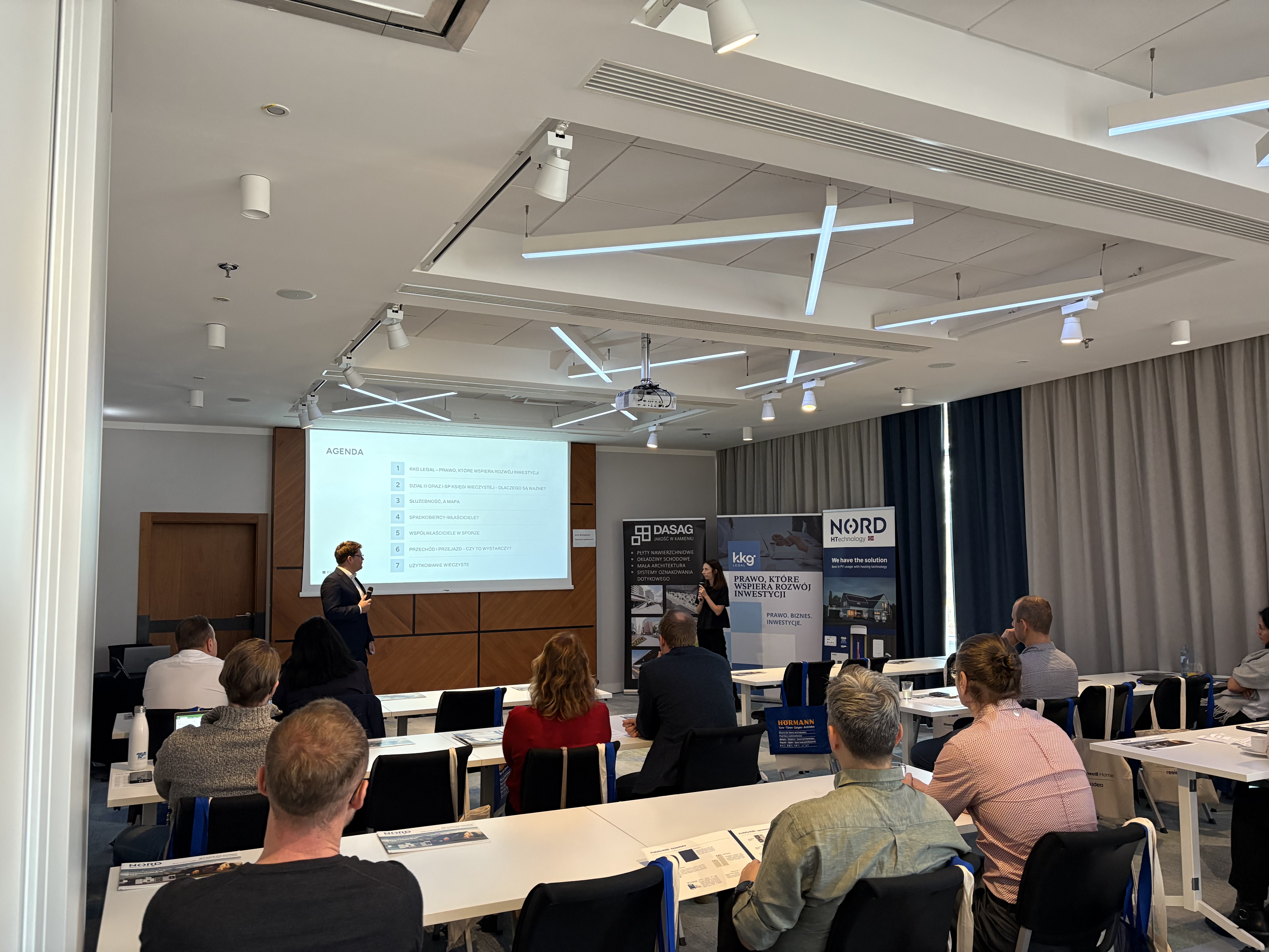 Podczas wydarzenia mec. Agata Ziobroń i mec. Wojciech Dobroś, senior associates KKG Legal, omówili zagadnienia związane z ryzykami wynikającymi z nieoczywistych wpisów w księgach wieczystych oraz sposobami ich identyfikacji i ograniczania już na etapie planowania inwestycji. Wystąpienie spotkało się z dużym zainteresowaniem uczestników, dla których kwestie bezpieczeństwa prawnego stanowią istotny element przygotowania i realizacji projektów deweloperskich.